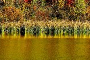 金色池塘图片,秋日美景的宁静画卷